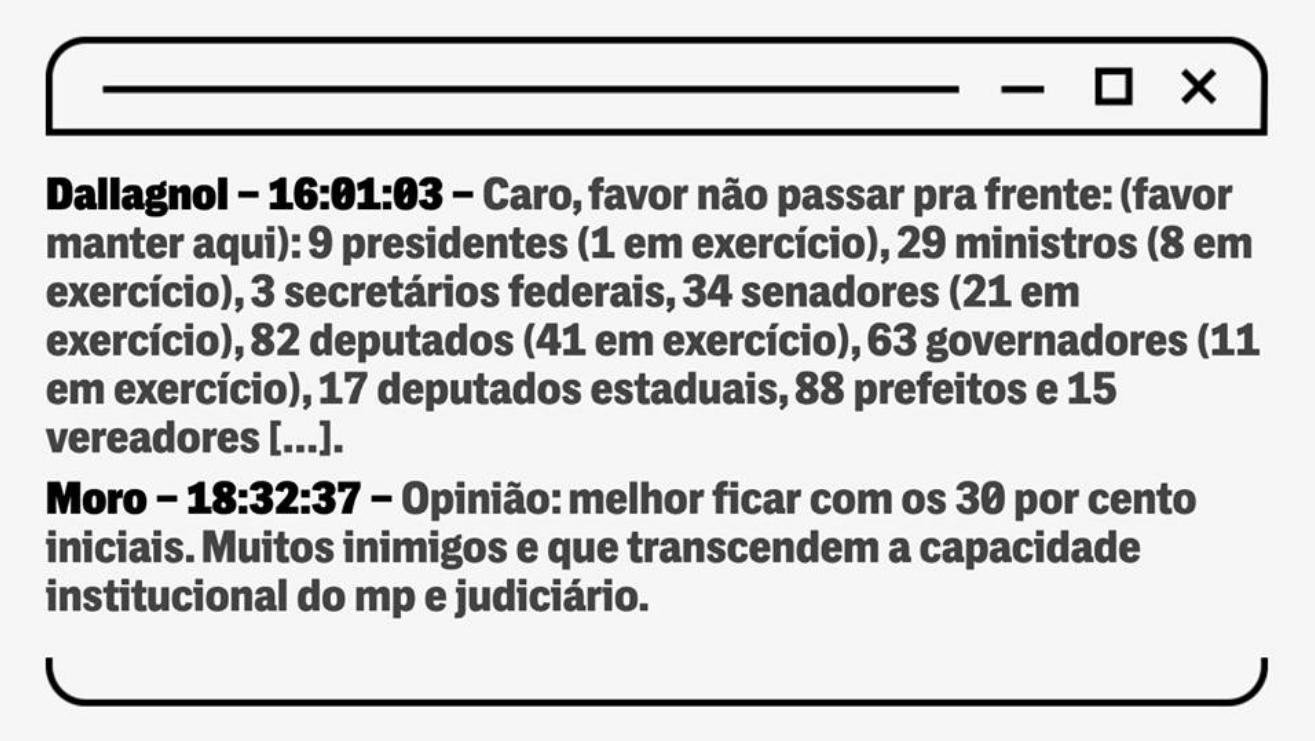 Dallagnol estaria informando a Moro sobre os políticos que estariam na